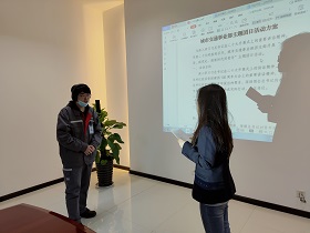 活動(dòng)中,兩兩分為一組,一人陳述總書記在二十大開幕式上的重要講話和共青團(tuán)建團(tuán)100周年大會(huì)上的重要講話中的金句,另外一個(gè)人戴著耳機(jī)看著對(duì)面那個(gè)人的口型去描述,現(xiàn)場(chǎng)氣氛歡快熱烈。